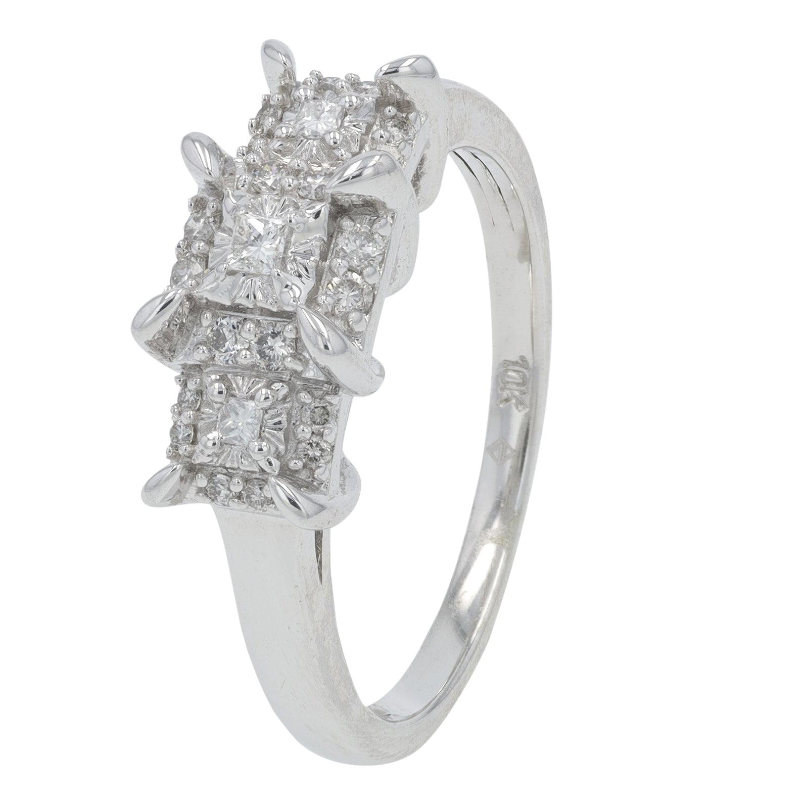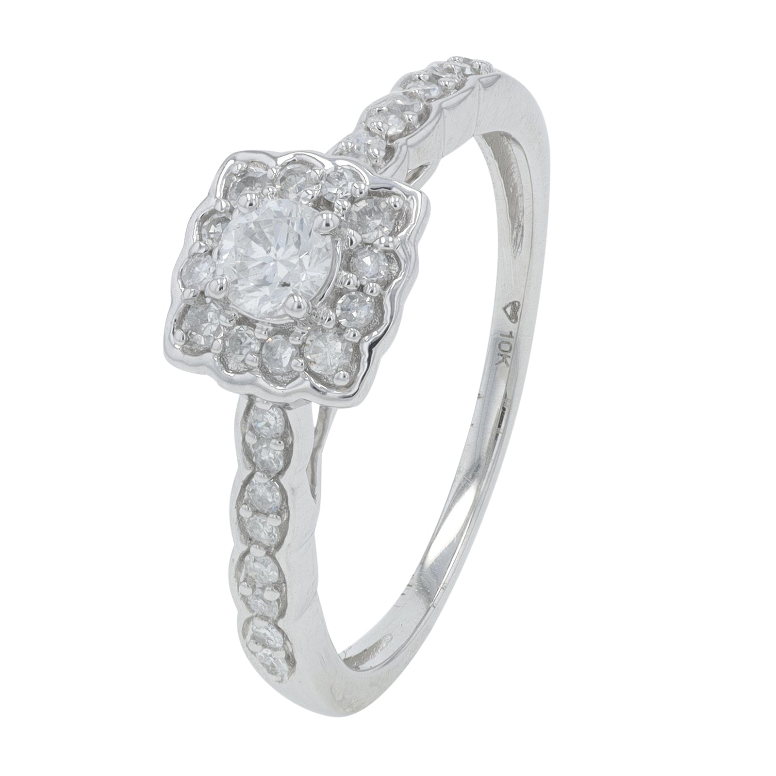 10K WG .33 CTW Diamond Cluster Engagement Ring