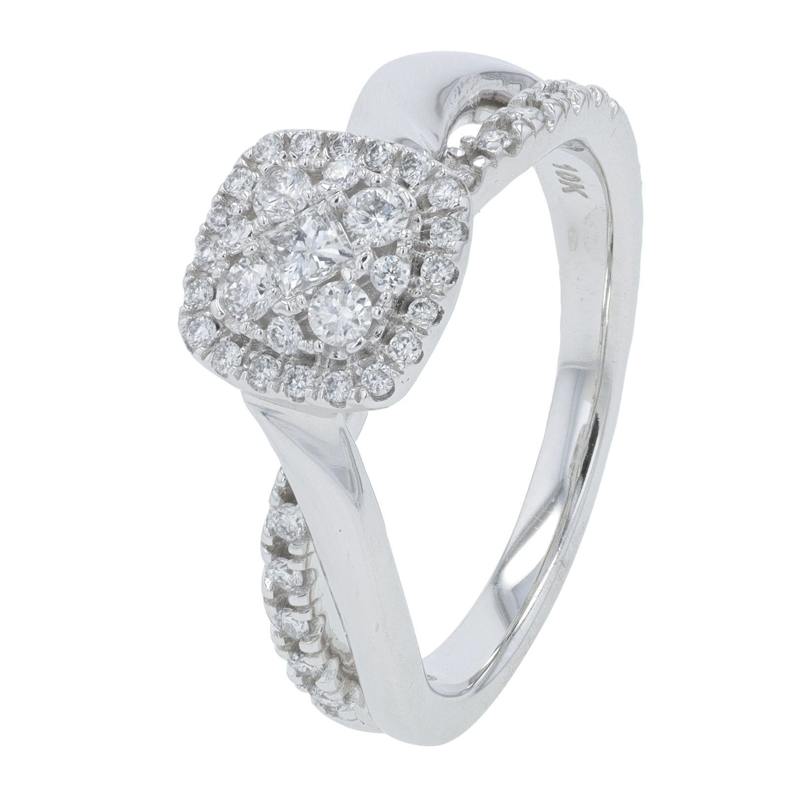 10K WG .38 CT Diamond Engagement Crossover Ring