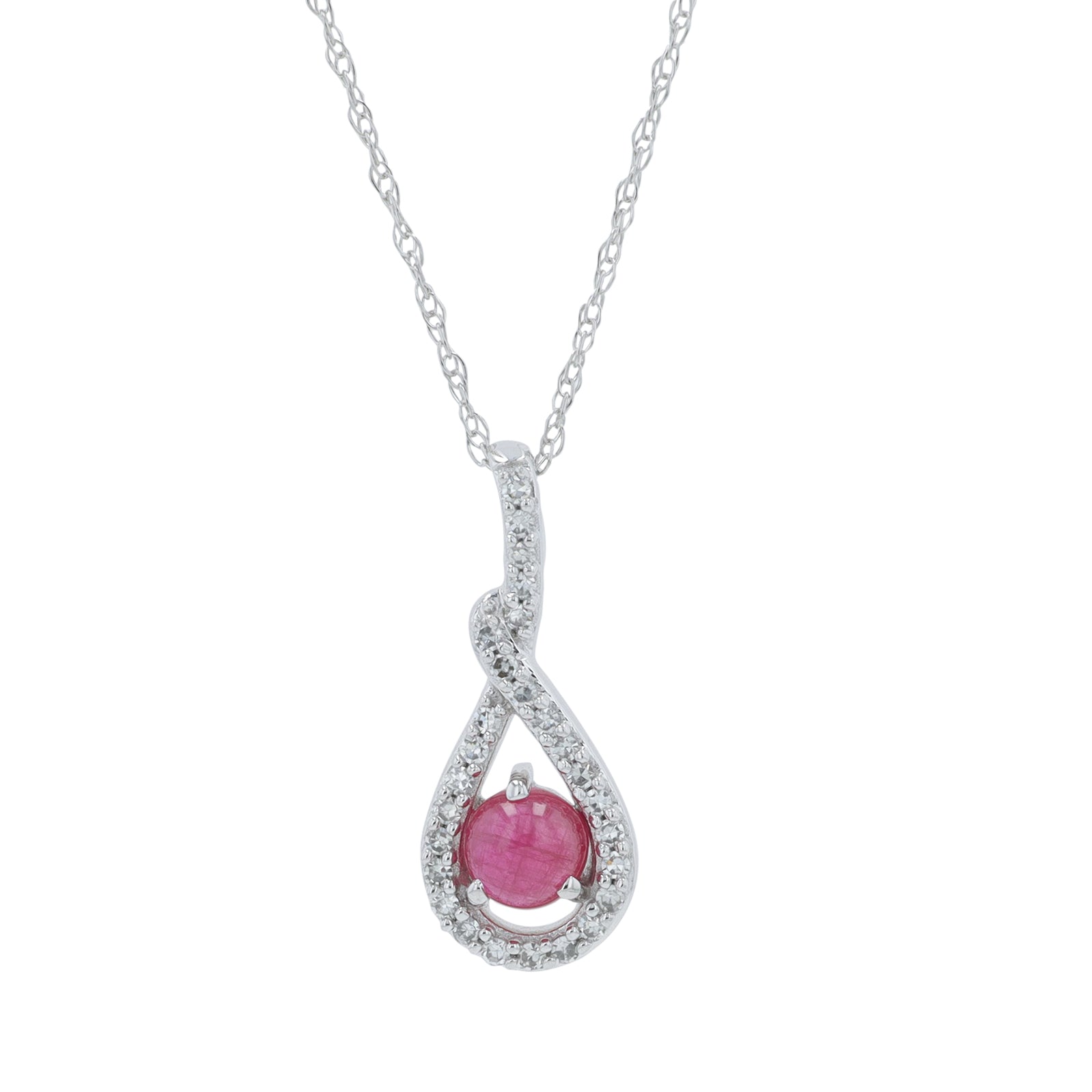 10K WG .42 CTW Cabochon Ruby Oval Necklace
