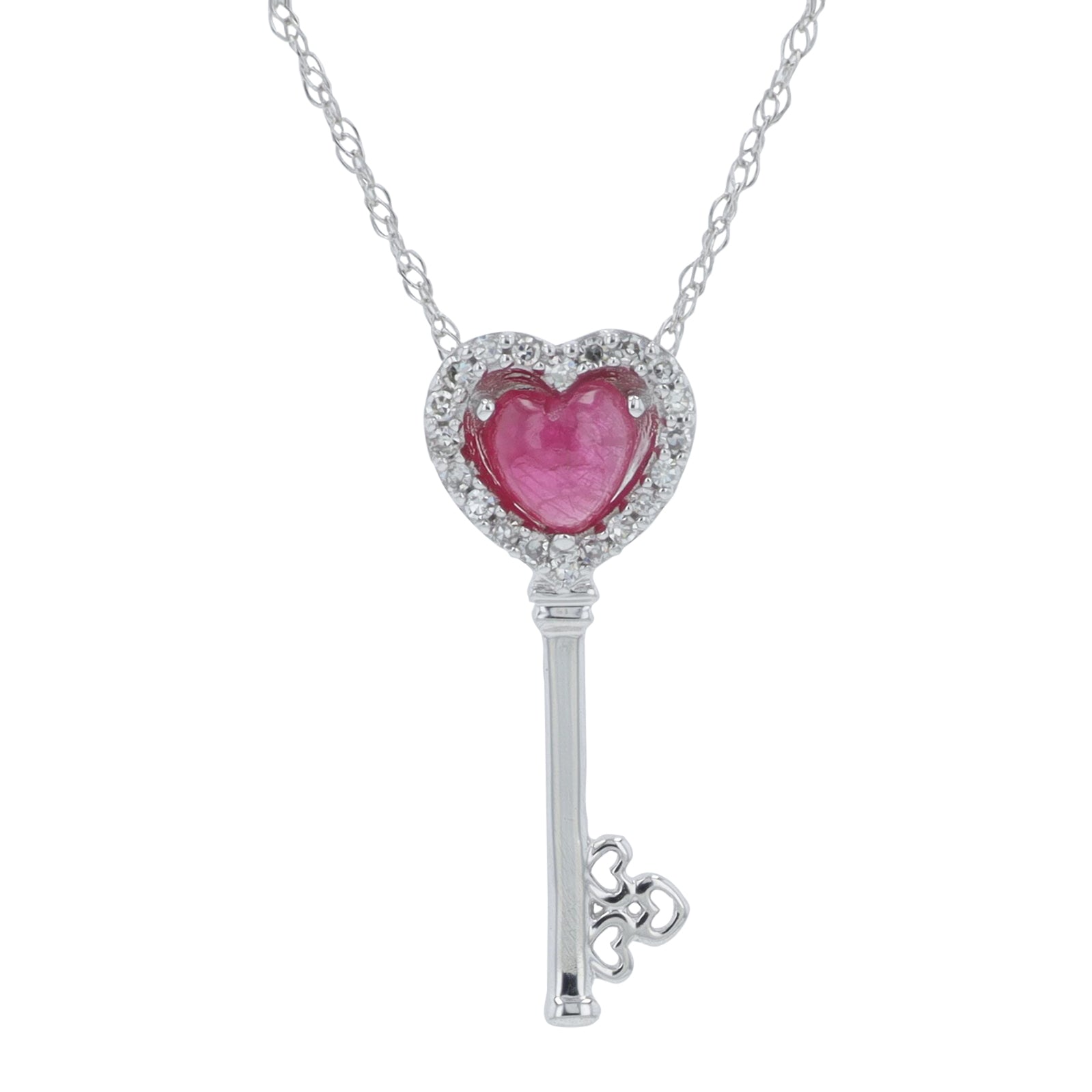 10K WG .40 CTW Ruby Heart & Key Pendant