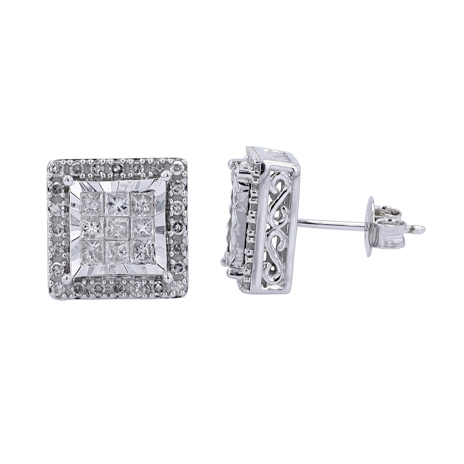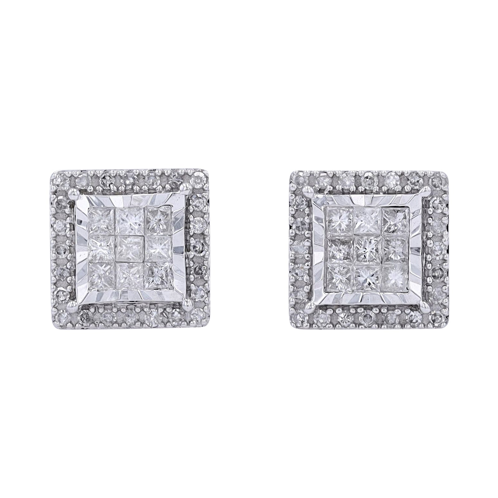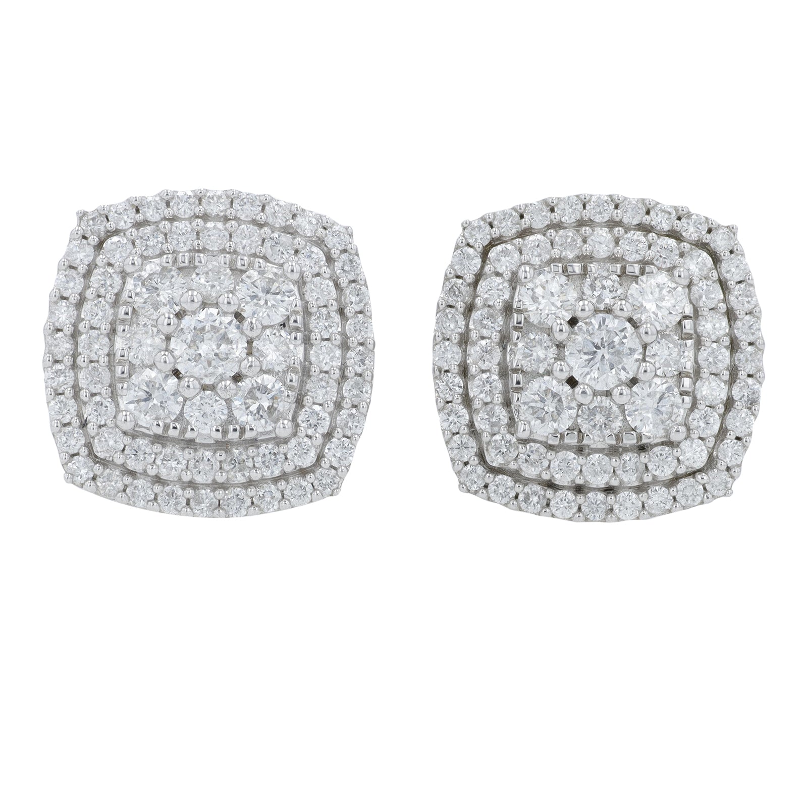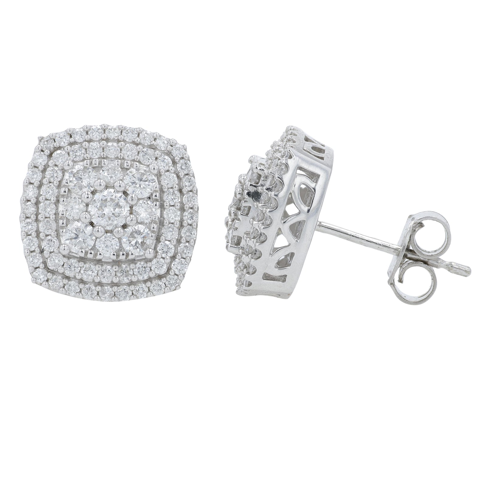 10K WG 1 CTW Diamond Square Cluster Studs