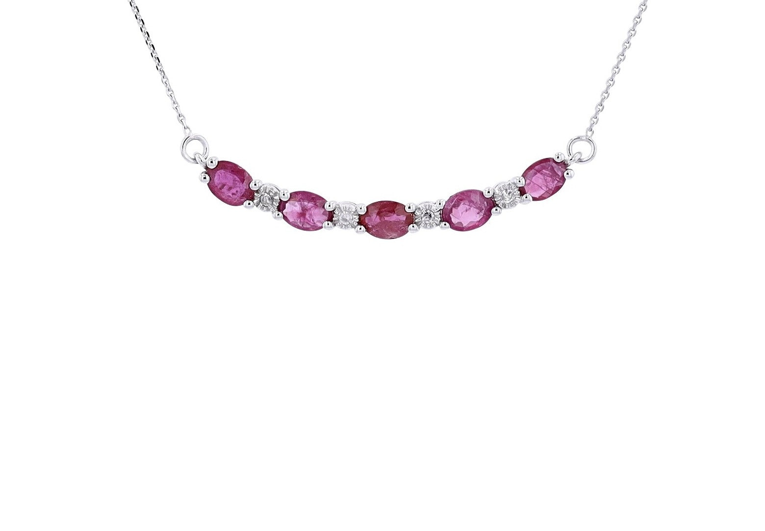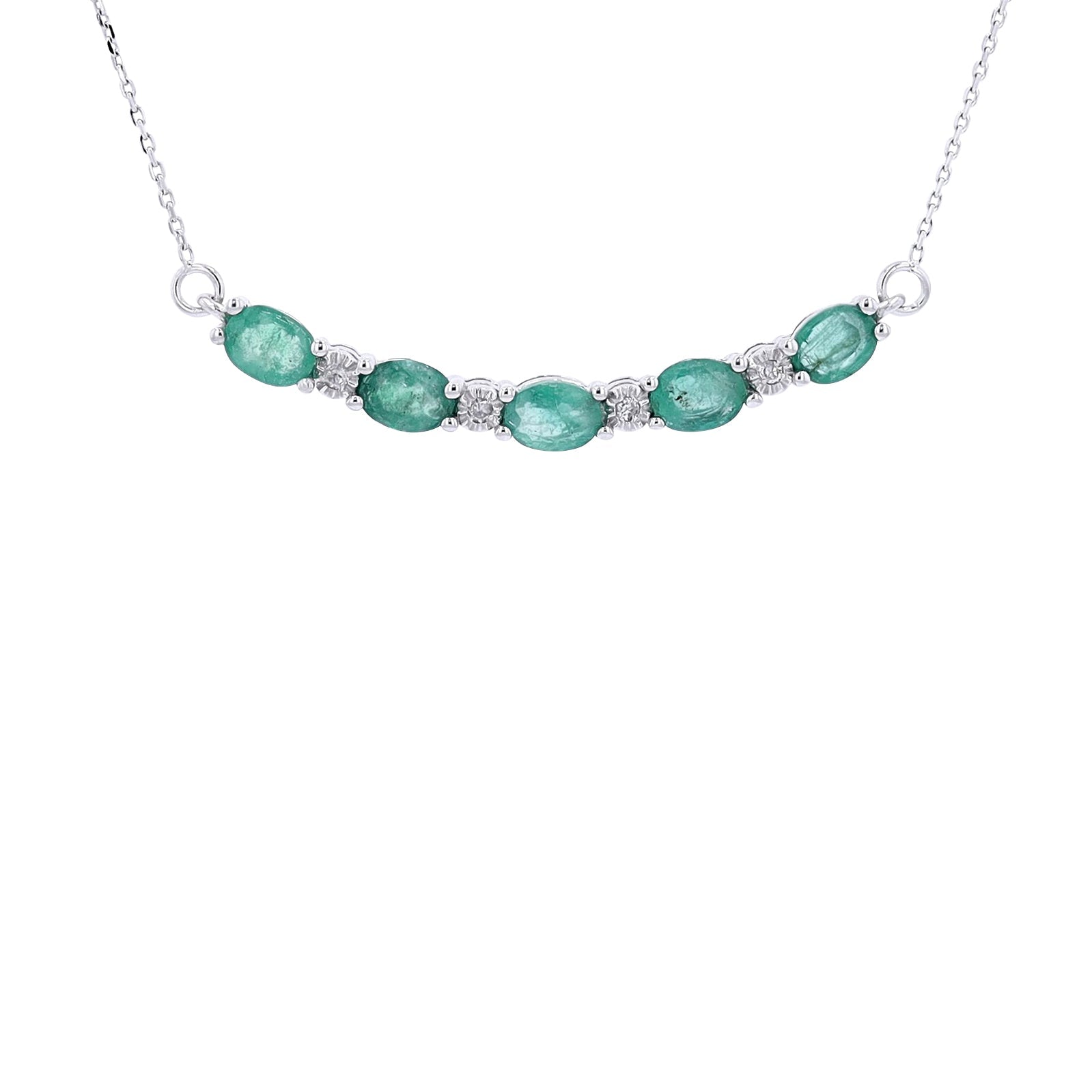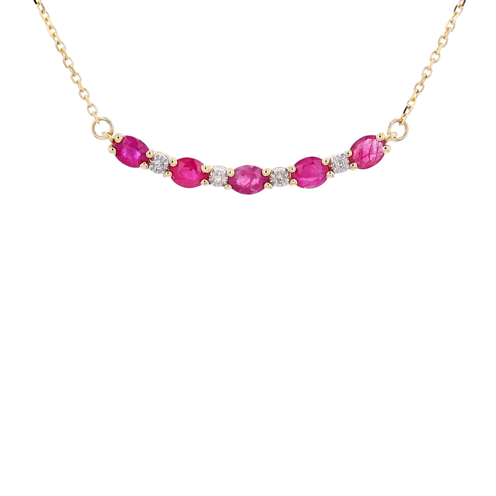10K Gemstone & Diamond Curved Bar NecklaceMore Colors Available