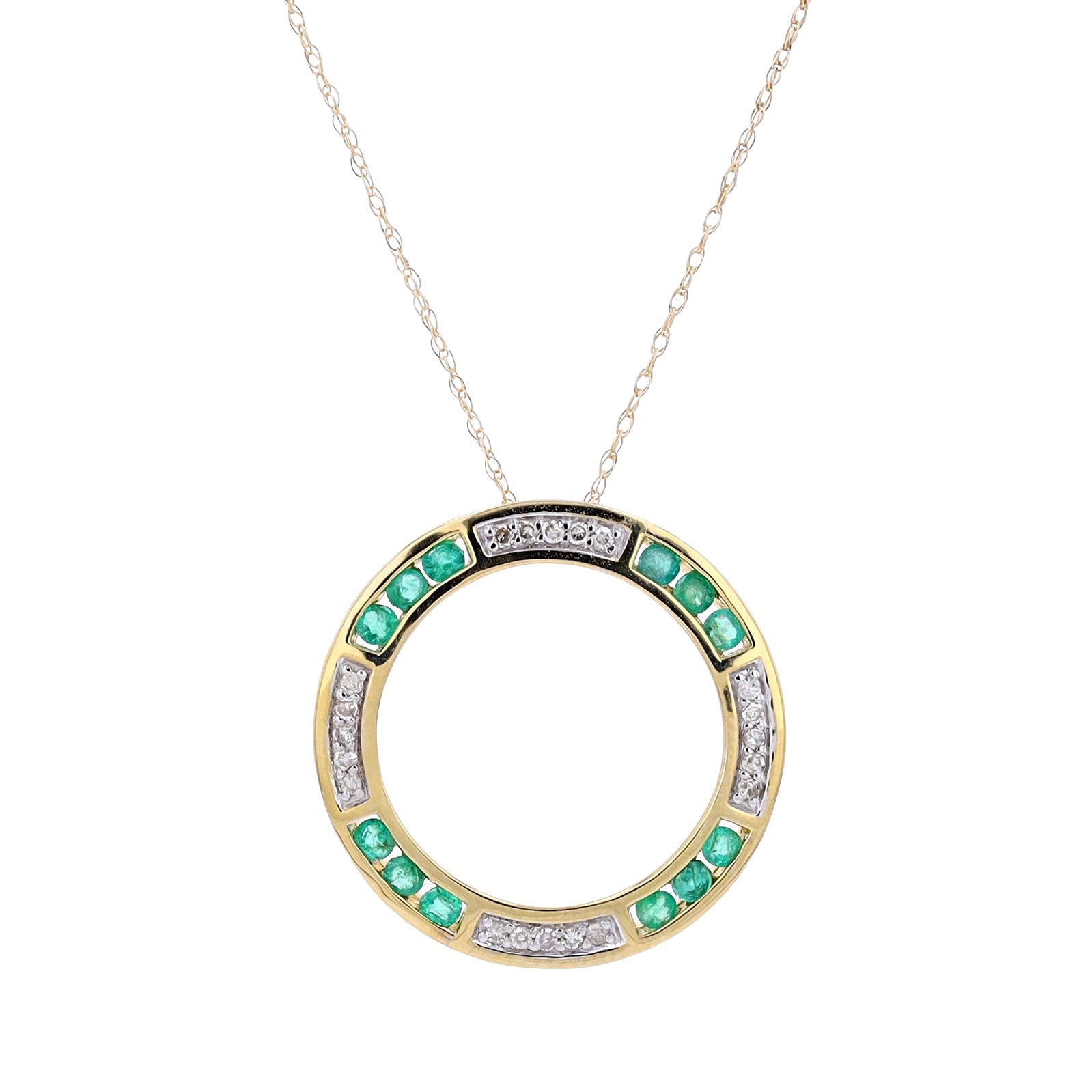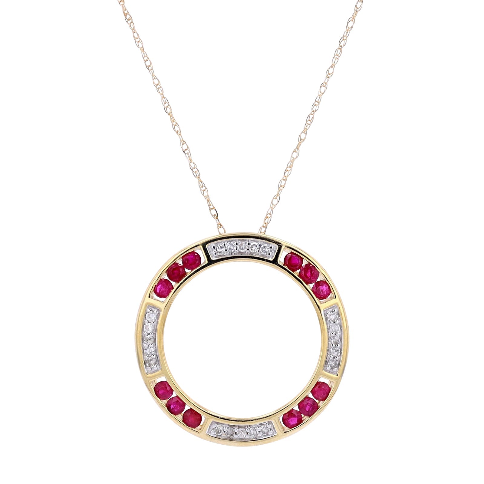 10K Gemstone & Diamond Circle PendantMore Colors Available