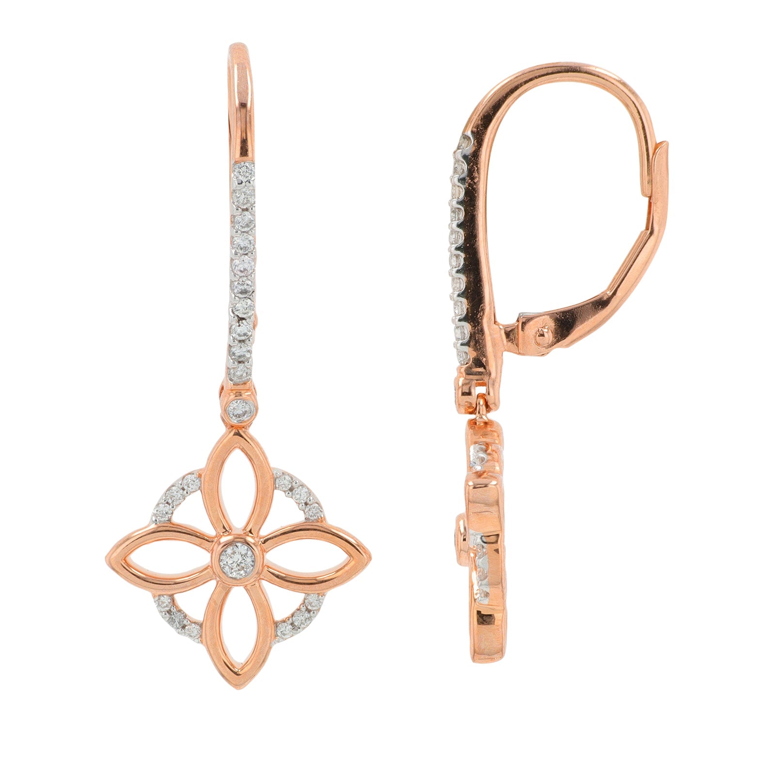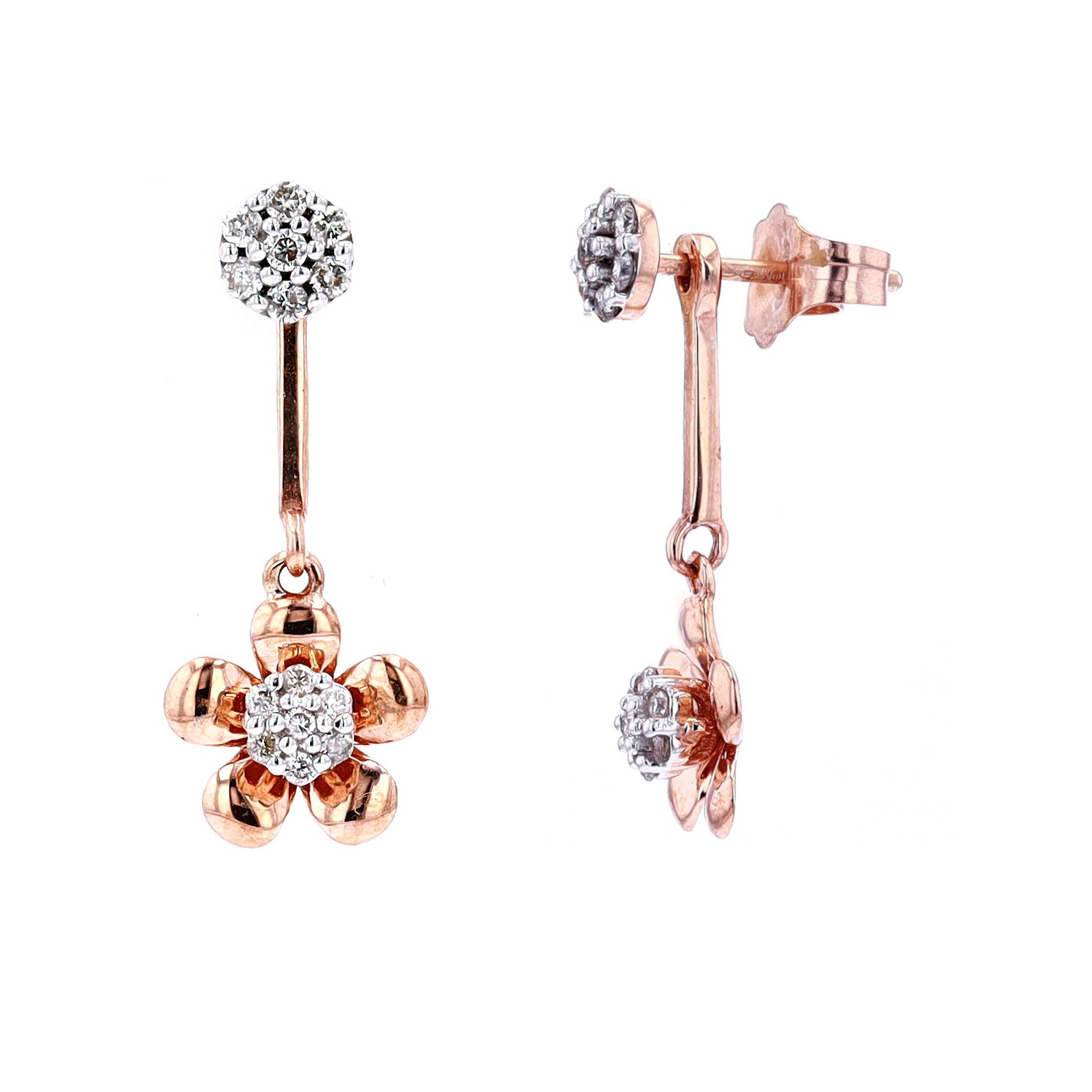 10K RG Diamond Flower Earrings