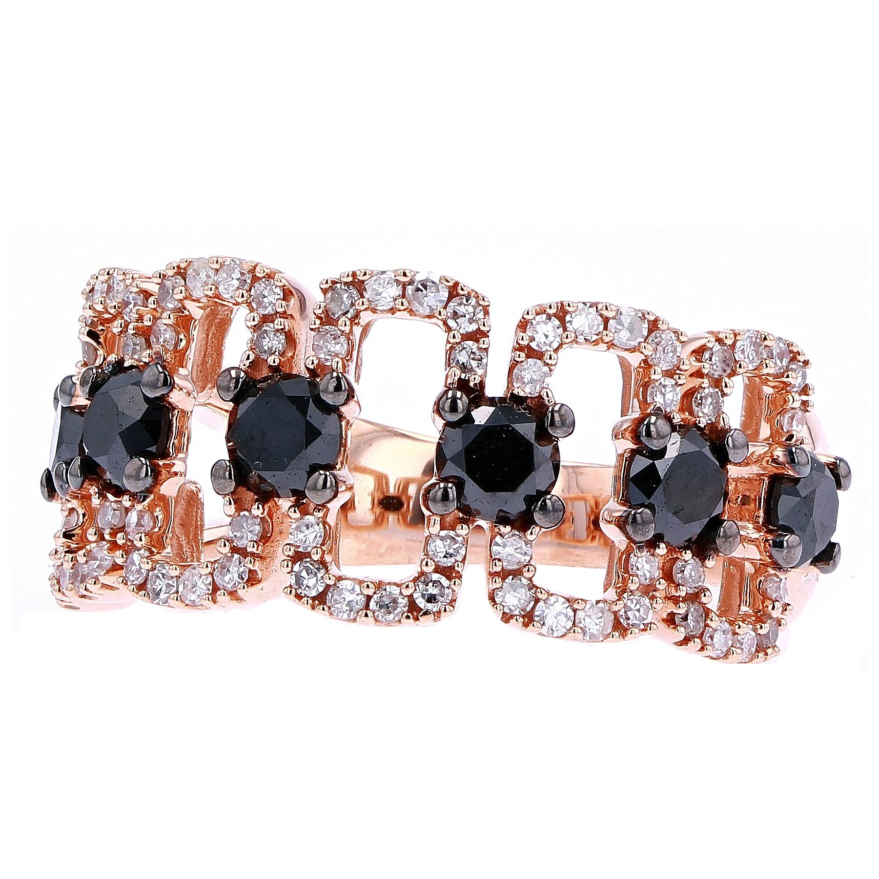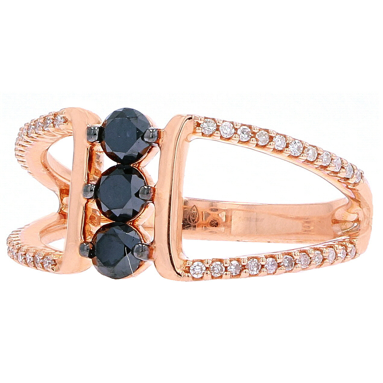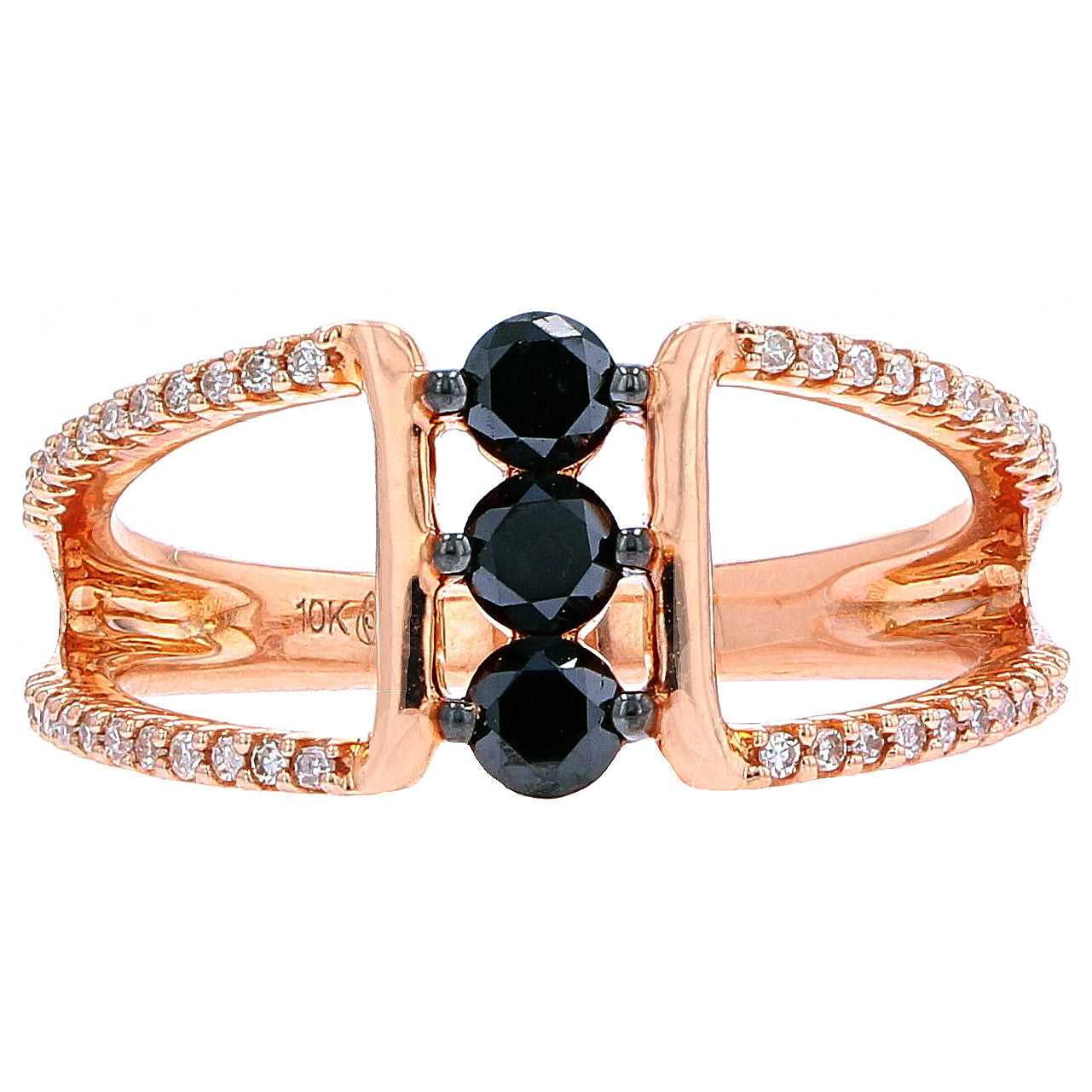 10K RG Black Diamond Three Stone Ring