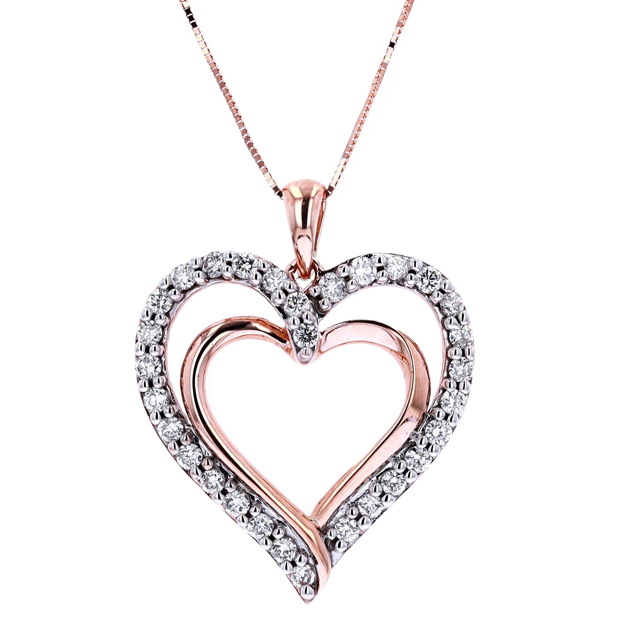 10K RG Diamond Heart Pendant