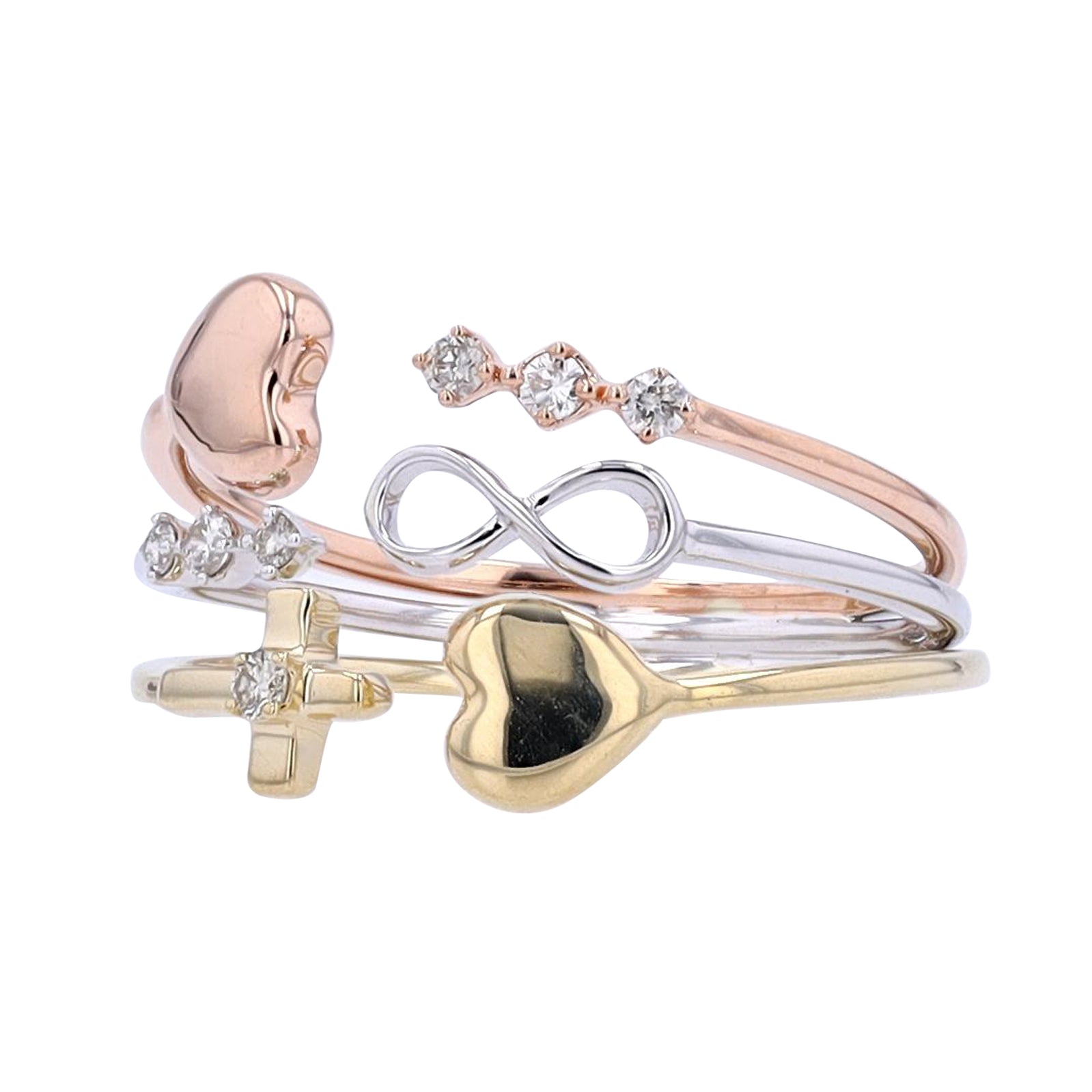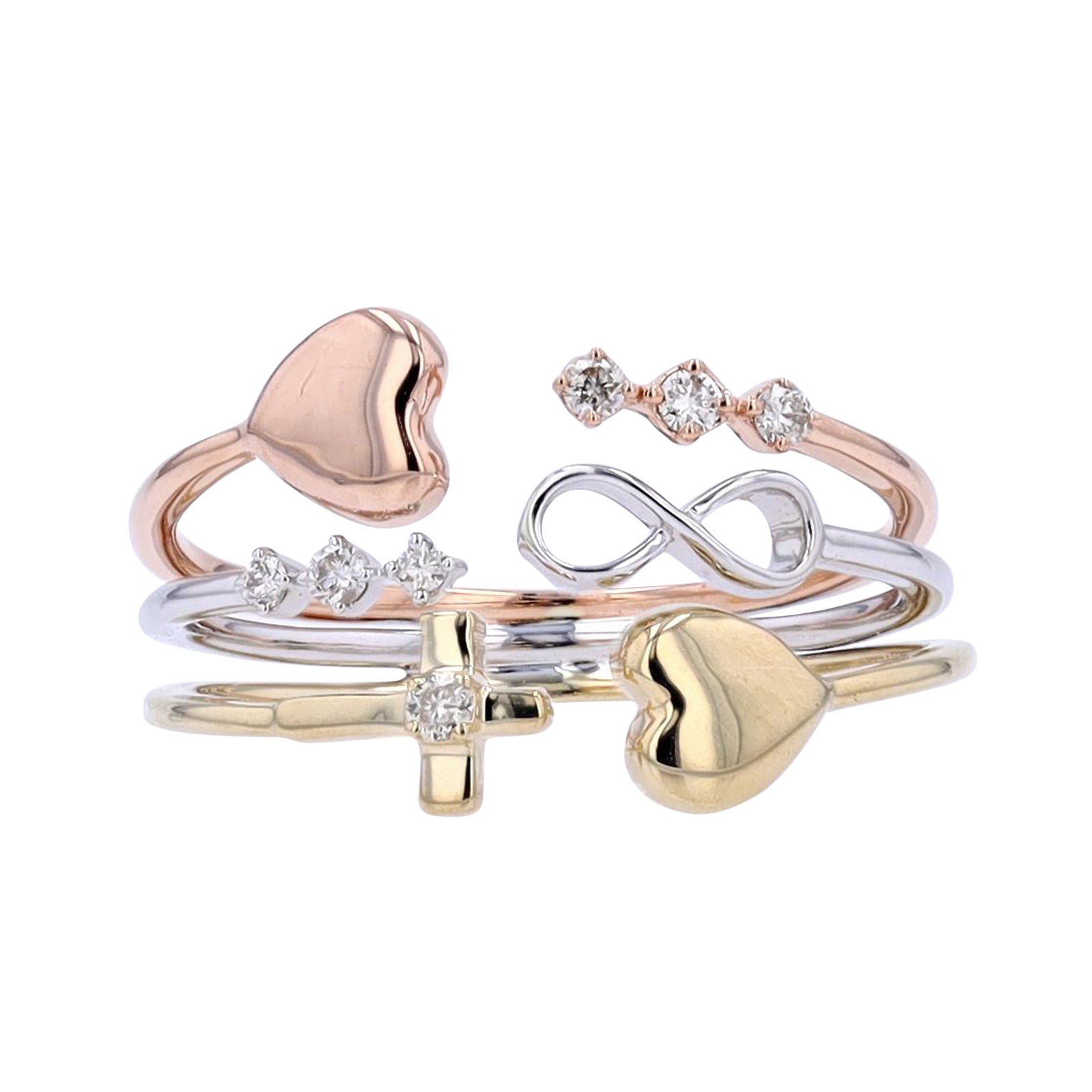 10K Tri-Tone Symbol Multi-Row Cuff Ring