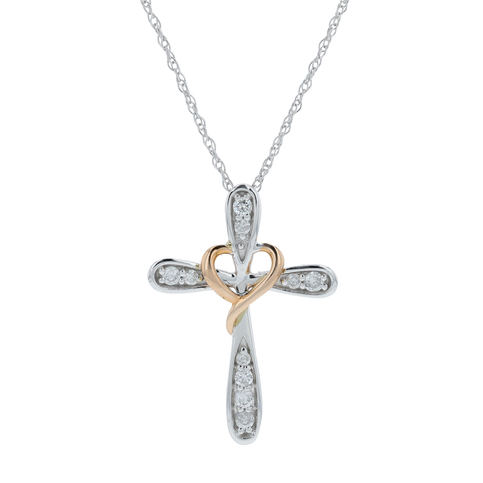 10K TT .10 CTW Diamond Cross Pendant