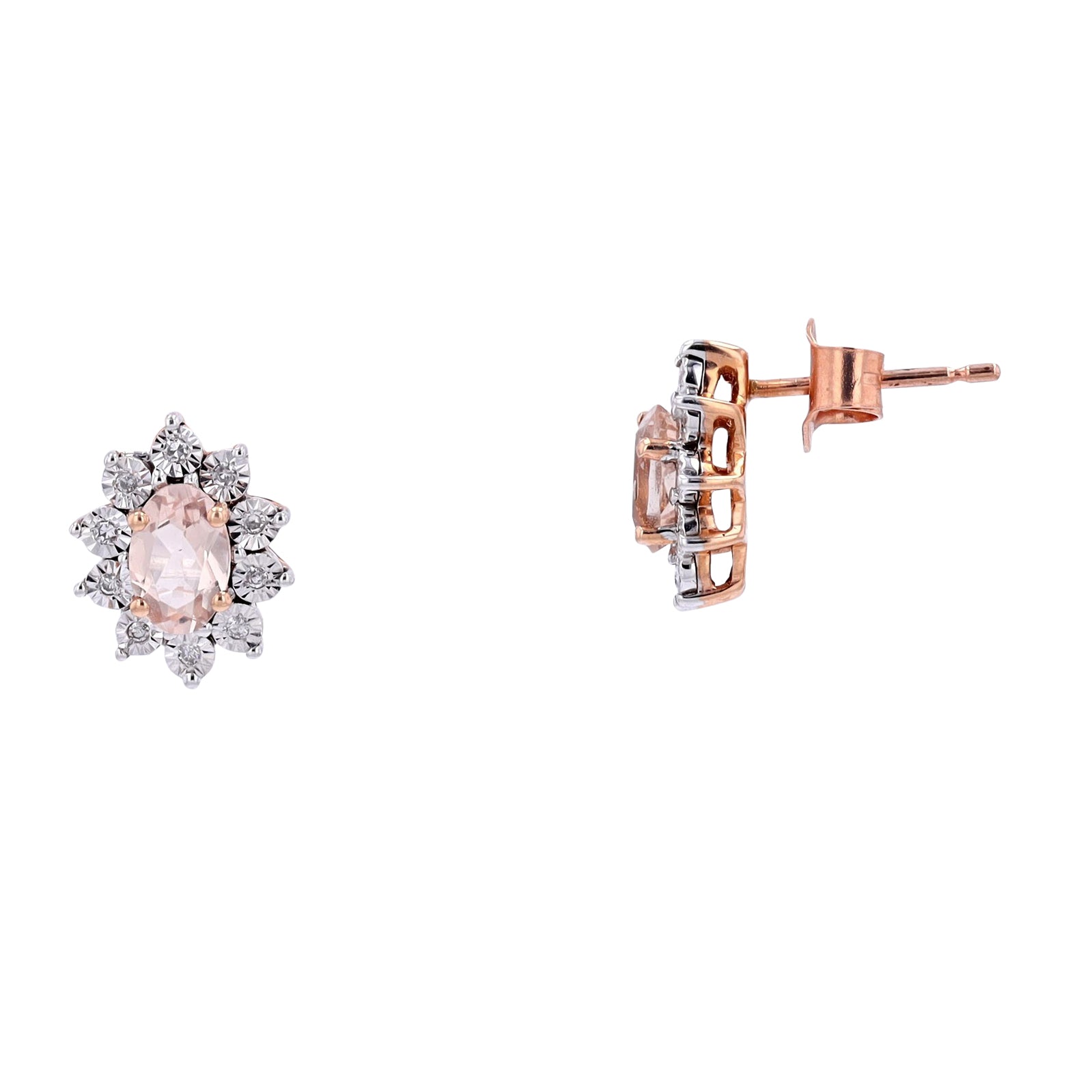 10K TT Morganite Halo Studs