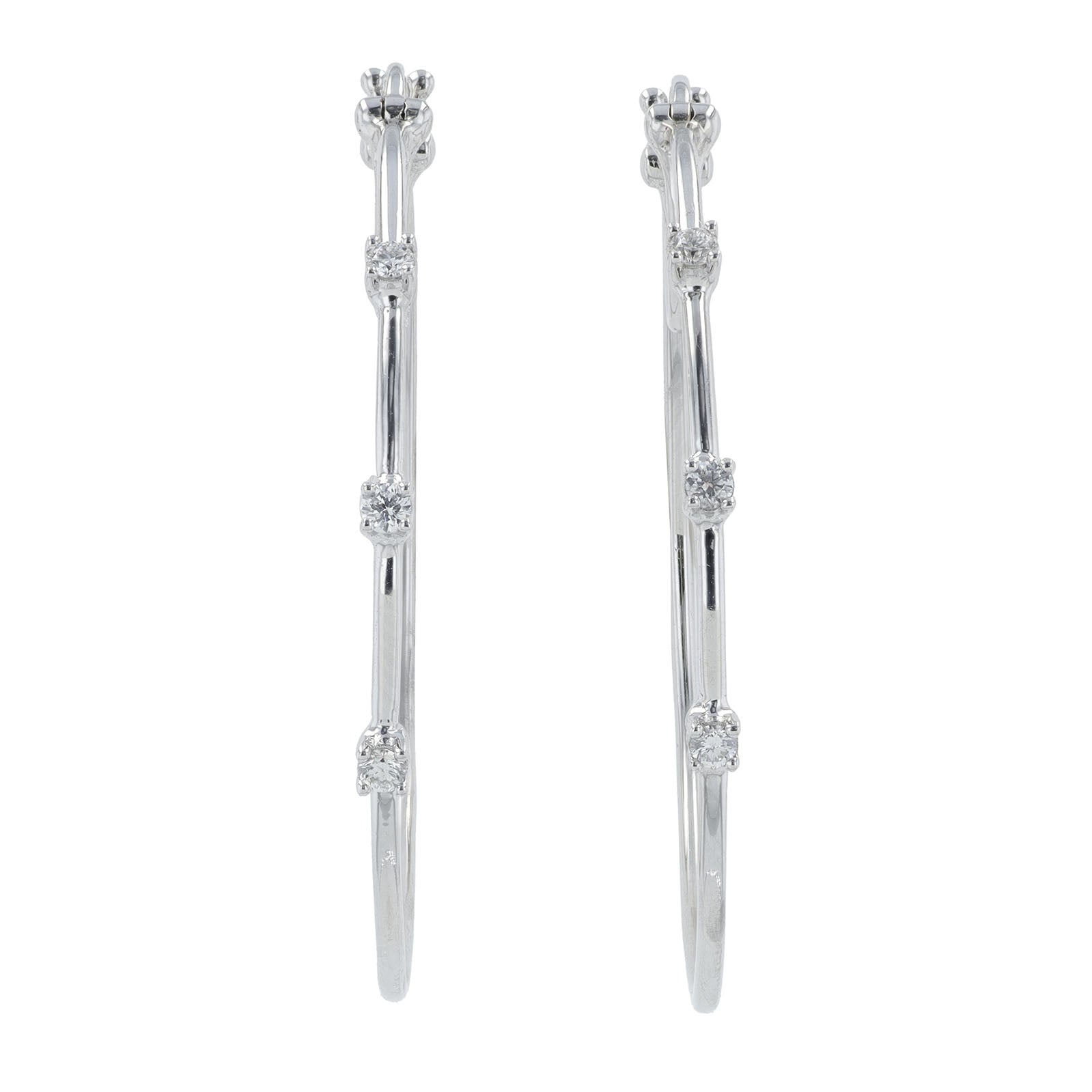 Lab Diamond Three Stone Hoops in 10K White Gold (0.14 ct. tw)